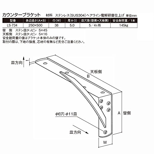 サヌキ カウンターブラケット LS-734 250×500×38 ステンレス