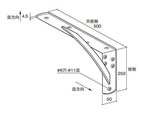 サヌキ 鉄製 カウンターブラケット 250×500mm 白塗装 LY-837
