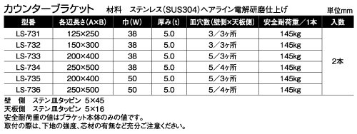 サヌキ ステンレス製 カウンターブラケット 250×500mm LS-736