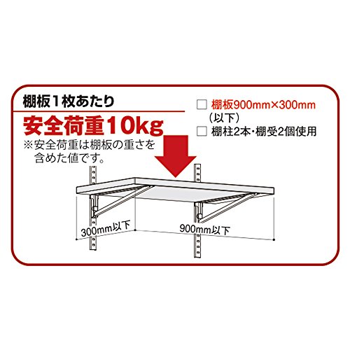 - 棚板1枚あたり安全荷重:10kg(棚板900×300mm以下、棚柱2本・ブラケット2個使用)