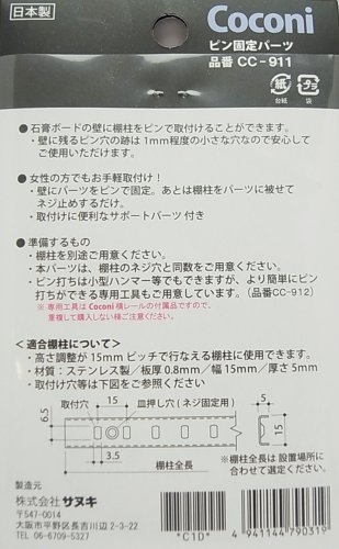 サヌキ Coconi 棚柱取付け用ピン固定パーツ 6個入
