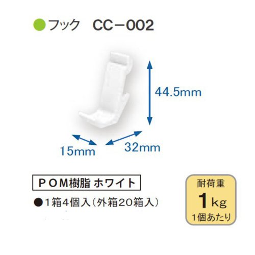 ●シングルベース、ダブルベース、横レール用フックです。●耐荷重1Kg。【注意事項】●必ず他のアイテムとの組み合せ荷重を確認して下さい。