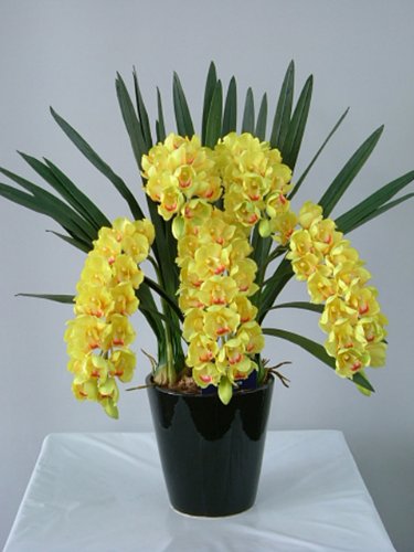 シンビジューム 黄 Mサイズ 5本 光触媒とアミノ酸のダブルコーティング 消臭力と抗菌力を発揮するアートフラワー