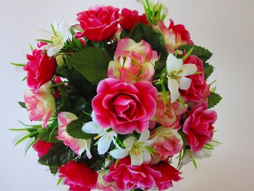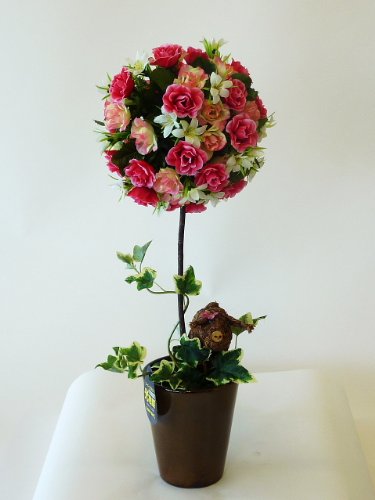 光触媒(造花) トピアリーフラワー(Lサイズ)白ピンク 花の部分が球状で、とてもかわいいトピアリーです。贈り物・母の日・新築祝・開店祝・誕生日・記念日・卒業式・入学式・ギフト・お歳暮・お年賀に