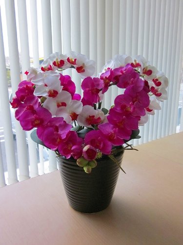 光触媒 胡蝶蘭ハート(ダブル)小(白赤・赤)ハートの形のアートフラワー(造花)でとってもキュートです。贈り物・母の日・新築祝・開店祝・誕生日・記念日・卒業式・入学式・ギフトに