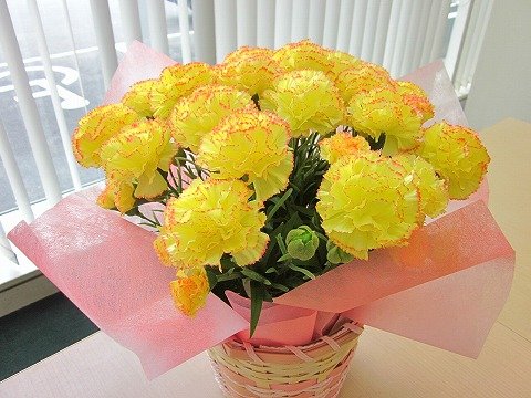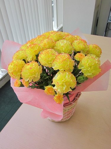 光触媒 アートフラワー 母の日 カーネーション イエロー カゴ付き 造花