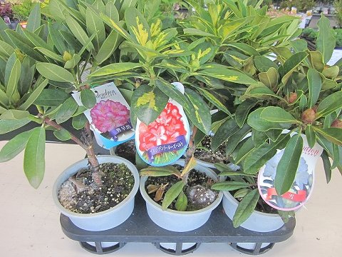 欧米で育成された園芸種などを総称して「西洋シャクナゲ」と呼びます。西洋シャクナゲの日本原産のシャクナゲとは違うところは、花が大きく、花色もカラフルで数多くの品種があります。花が枝の頂点にさく品種(頂生といいます)が特に美しく、満開の時期は見事です。