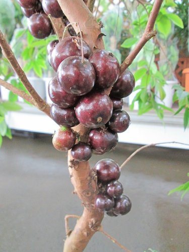 ジャボチカバは、別名で木葡萄(キブドウ)とも呼ばれ、ぶどうの巨峰とそっくりな実を幹や枝に直接つける熱帯果樹です。収穫後は、数時間程度で味が変わってしまうので、青果店やスーパー等の一般店舗には、ほとんど流通することがありません。また、美しい樹形ですので、観葉植物や盆栽としても楽しめます。また、寒さに強く0度以上で管理すれば枯れる心配もありません。