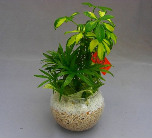 ハイドロカルチャーという土を使わない水耕栽培の観葉植物です。サンゴ砂を敷き詰めたガラス鉢がお部屋のインテリアにオススメです。ハイドロカルチャーは、水が無くなったら少し入れるという事を基本にすれば、本当に手間がかからず簡単で衛生的です。サンゴ砂は、雑菌等の抑制、水の濾過効果があり、水質が清潔な状態で保たれます。水質をアルカリ性に保ちますので、雑草を抑制する効果があります。土を使用していませんので、害虫が発生しません。