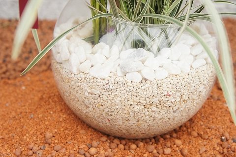 ハイドロカルチャーという土を使わない水耕栽培の観葉植物です。ハイドロボールを敷き詰めたガラス鉢がお部屋のインテリアにオススメです。ハイドロカルチャーは、水が無くなったら少し入れるという事を基本にすれば、本当に手間がかからず簡単で衛生的です。土を使用していませんので、害虫が発生しません。