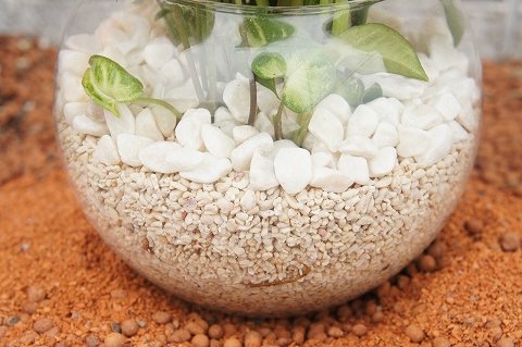 ハイドロカルチャーという土を使わない水耕栽培の観葉植物です。ハイドロボールを敷き詰めたガラス鉢がお部屋のインテリアにオススメです。ハイドロカルチャーは、水が無くなったら少し入れるという事を基本にすれば、本当に手間がかからず簡単で衛生的です。土を使用していませんので、害虫が発生しません。