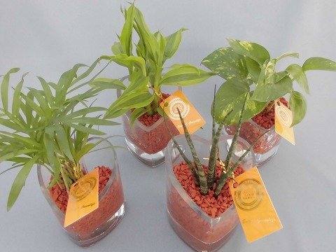 ハイドロカルチャーという土を使わない水耕栽培の観葉植物です。セラミスグラニューを敷き詰めたガラス鉢がお部屋のインテリアにオススメです。ハイドロカルチャーは、水が無くなったら少し入れるという事を基本にすれば、本当に手間がかからず簡単で衛生的です。土を使用していませんので、害虫が発生しません。