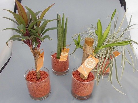ハイドロカルチャーという土を使わない水耕栽培の観葉植物です。セラミスグラニューを敷き詰めたガラス鉢がお部屋のインテリアにオススメです。ハイドロカルチャーは、水が無くなったら少し入れるという事を基本にすれば、本当に手間がかからず簡単で衛生的です。土を使用していませんので、害虫が発生しません。