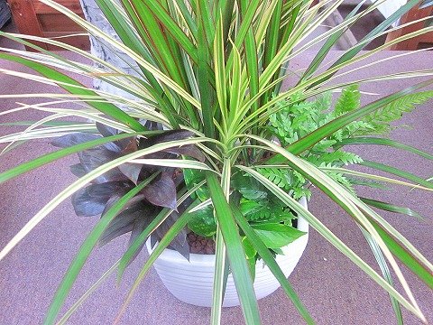 ドラセナ コンシンネ ホワイボリー 寄せ植え 白陶器鉢 観葉植物