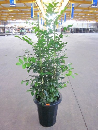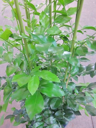 ツヤツヤとした葉が特徴的な涼しげな観葉植物です。トネリコ種に似ていますが、ミカン科の植物で、ジャスミンに似た芳香のある白い花が咲き、花は可憐でとても美しく、鑑賞価値の高い植物です。