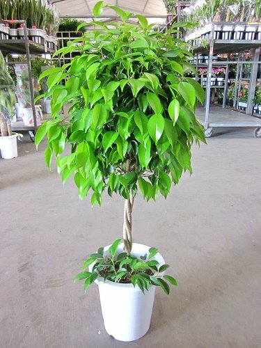 ベンジャミンは、光沢のある葉が美しく、エレガントな雰囲気をもつ、インテリアグリーンとして人気のある育てやすい観葉植物です。また、刈り込みに強いため、枝を工夫しやすく様々な樹形に仕立てることができます。