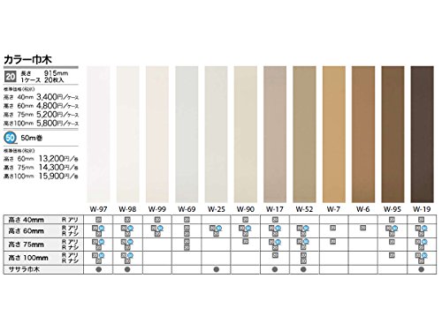 サンゲツ カラー巾木 高さ100mm Rナシ 長さ915mm 1ケース20枚入り (W-97)