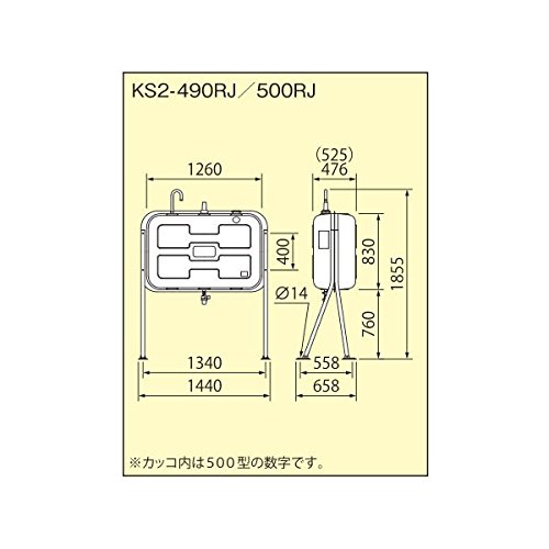 サンダイヤ壁寄りタイプ490型オイルタンク:本体高さ1855mm(吸気管まで)・脚の奥行658mm・設置総幅1440mm:タンク上部までの高さ1590mm※組み立て式