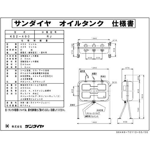 - 質量:70kg(本体のみ)※設置には管轄消防署届出、危険物資格が必要です。