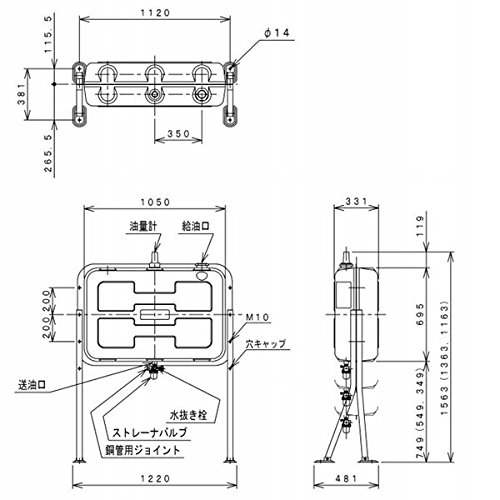 サンダイヤ 200型タンク 壁寄りタイプ(脚高調節可能) 『容積220L』 KS3-200RJ