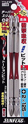 ●当社オリジナルのトーション加工で、左右の回転トルクを吸収する事により、先端の耐久性を大幅にアップしています。●先端がスリム形状で、ねじ頭が見やすく作業効率上がります。●特殊先端形状にて、回転時の浮き上がり現象(カムアウト)を軽減しています。●全長(mm):125●刃先:[[(+)]]2●シャンク径:6.35mm●特殊鋼●原産国:日本
