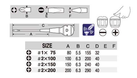 ●ハイグリップドライバーは、硬質ブラスチックで軸をしっかり固定。