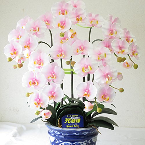 花 胡蝶蘭 花 光触媒 胡蝶蘭 白ピンク 誕生日プレゼント 開店・開業の贈り物・ギフト・プレゼントに最適。お部屋をきれいにする、防菌・防臭効果。本物と見違える程のハイクオリティーの 光触媒 胡蝶蘭 造花 新築・お祝いギフト。陶器鉢・皿付です サンモクスイ(商標登録第5497927号)