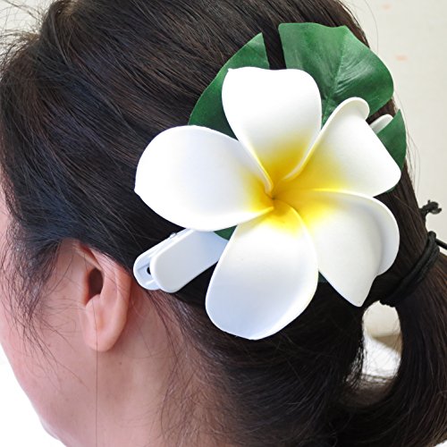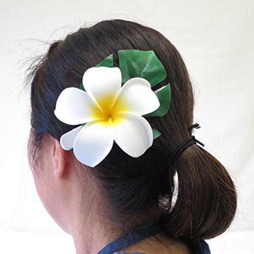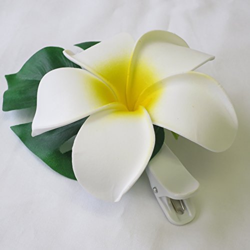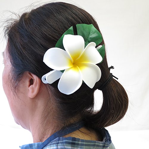誕生日 プレゼント 女性 へ花のプレゼント。・ホワイトデーフラワー・クリスマスプレゼントの花。送料無料フラワー。ギフト 花束。造花のプルメリアとモンスの葉をヘアピンにアレンジした髪飾りです。ハワイ大好き、フラダンスに夢中なフラガールに喜ばれます。ハワイ プルメリア