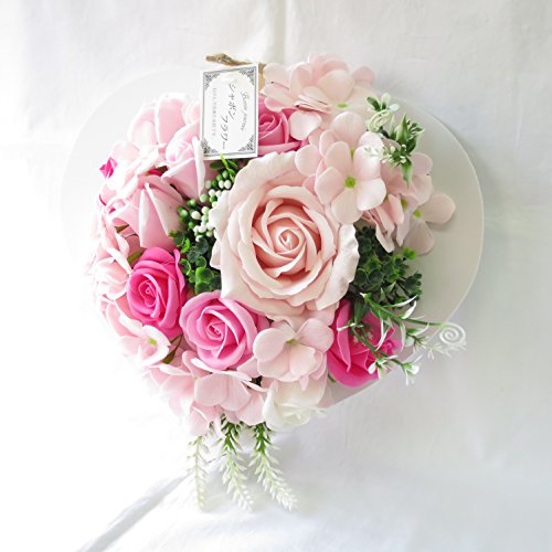 母の日 ギフト 花 誕生日プレゼント女性 プレゼント ソープフラワー フレグランス フラワー 造花 (壁掛けハートピンク)