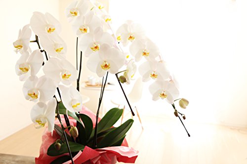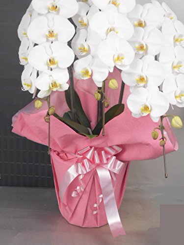 花 胡蝶蘭 ギフト 生花。 花 大輪3本立ち27輪(つぼみ含む)くらい。ピンク系ラッピング。誕生日プレゼント 新改築・引越し祝い用フラワー。通常のお祝いや企業間・ビジネス上の贈り物として一般的なサイズです。画像はイメージです。ラッピングは変更される場合はございます。
