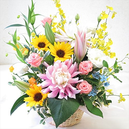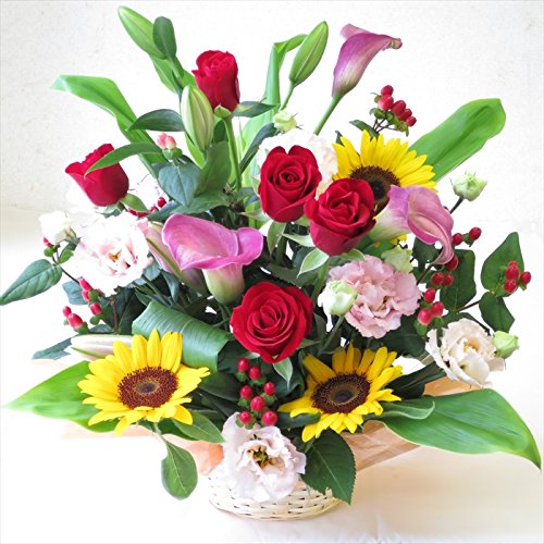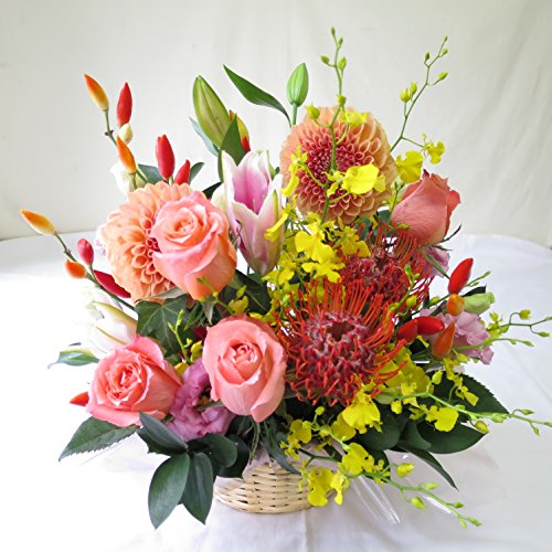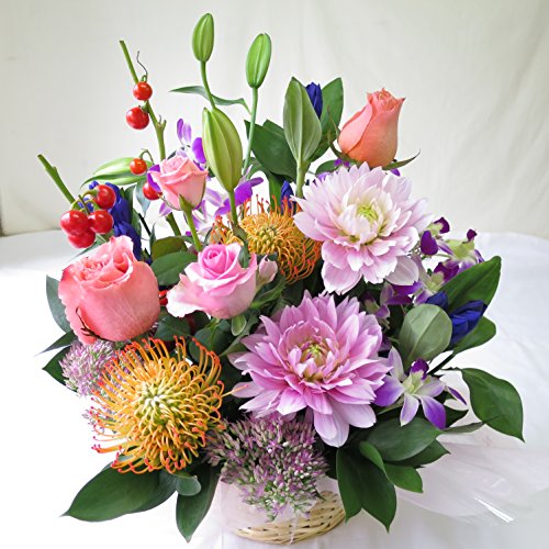 - ◎本州は送料無料。アレンジメントの大きさは横約28cm 高さ約35cm。写真はイメージです。お花やラッピング、リボンは季節により変更される場合があります。フラワーアレンジメント。プレゼントやいろんなお祝いに気軽に贈れる人気のサイズ。