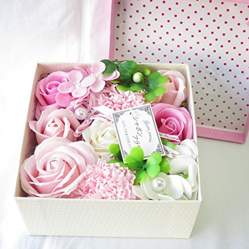 花のプレゼント 花 ソープフラワー フレグランス フラワー 造花 誕生日プレゼント 女性 (BOXピンク)