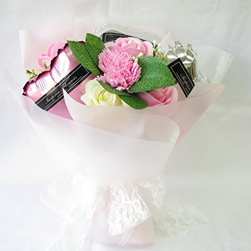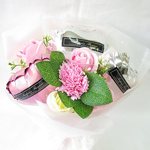 花束 花 誕生日プレゼント女性 プレゼント ソープフラワー フレグランス フラワー 造花 (シャボンとバルーン のピンク系ブーケ)
