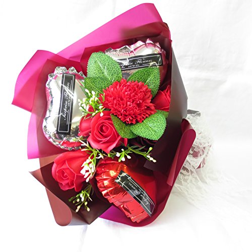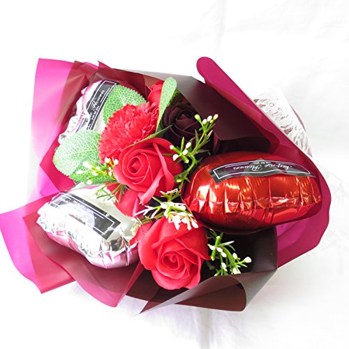母の日のプレゼント 母の日 花 ギフト プレゼント 花 誕生日プレゼント女性 プレゼント ソープフラワー フレグランス フラワー 造花 (シャボンとバルーン赤系ブーケ)