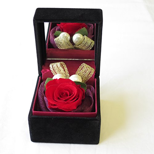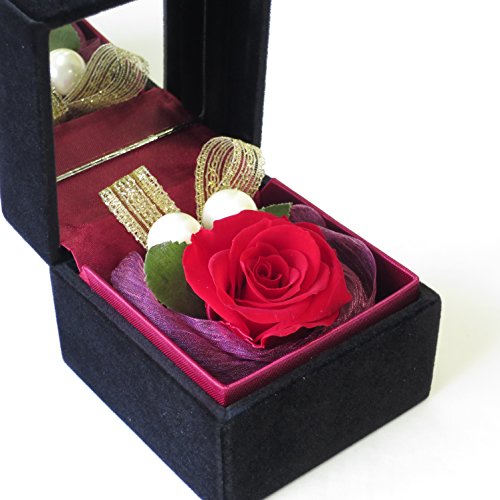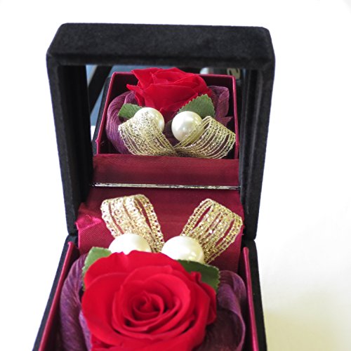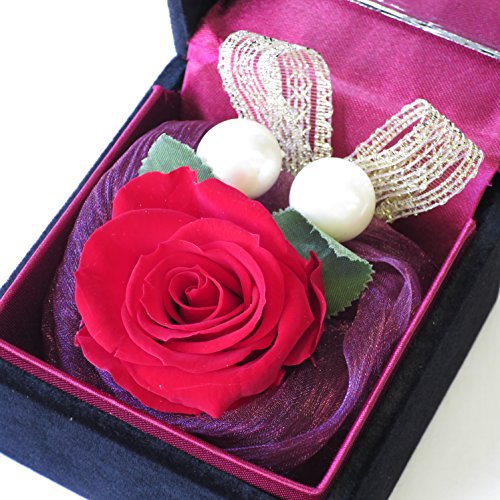 新品 国産手作り 送料無料。誕生日プレゼント ホワイトデー お返し 母の日 花 プレゼント クリスマスプレゼント に最適。普通のバラなら数日で枯れてしまいますが、生花のバラから作成したプリザーブドフラワーは人体に無害なオーガニック色素を生のバラに吸い上げさせて加工し、みずみずしい姿を数年にわたり変わらない状態を保ってくれるお花です。 ジュエリ-ボックスを開けた時の笑顔が楽しみ。プリザーブドフラワーのバラ。フェイクのパール。国産手作り。