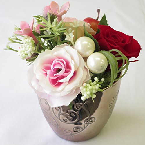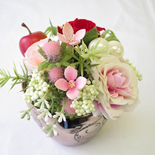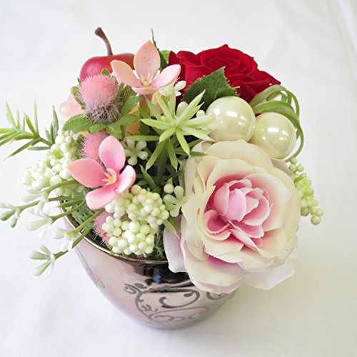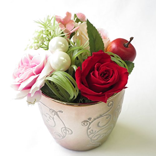 - 高級プリーザーブドフラワーのバラとアートフィシャルフラワーのアレンジメント。器がオシャレ。※写真はイメージです。手作りの為、お花やバラの色その他の花材は一部変更される場合があります。