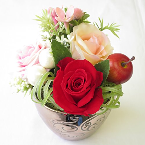 花 誕生日プレゼント 女性 プリザーブドフラワーとアートフシャルフラワー(造花) フラワーアレンジメント サンモクスイ(商標登録第5497927号)の手作り