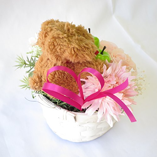 誕生日プレゼント 女性 花 プリザーブドフラワーのバラと アートフシャルフラワー(造花)の パピー トイプードル(高さ約7cm) の フラワーアレンジメント ホコリも安心のクリアケース入り サンモクスイ(商標登録第5497927号)の手作り(ブラウン)