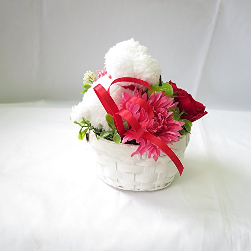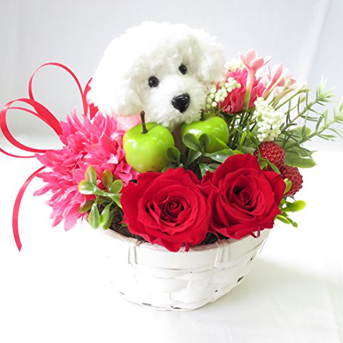 プレゼント 女性 花 プリザーブドフラワーのバラ トイプードル フラワーアレンジメント (ホワイト)