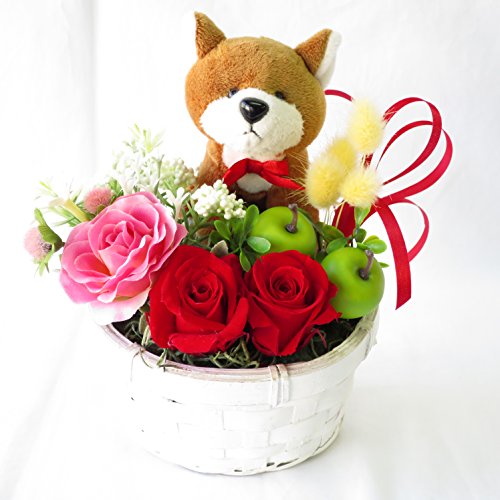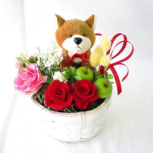 誕生日プレゼント 父の日プレゼント 人気商品 女性 花 ギフト プリザーブドフラワーのバラと柴犬のフラワーアレンジメント 犬 アレンジメント (柴犬)