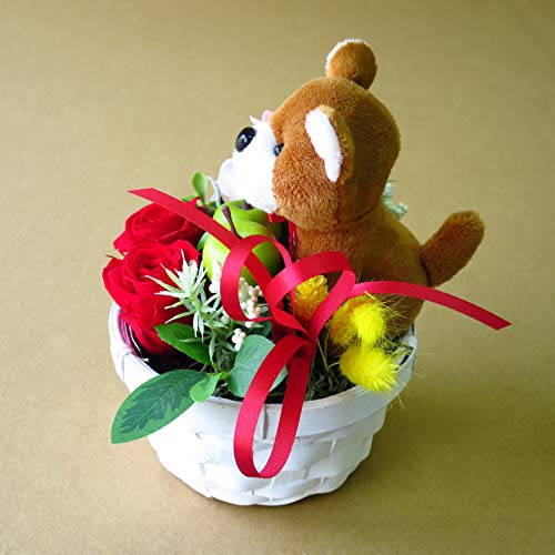 - 柴犬とプリーザーブドフラワーのバラと造花のフラワーアレンジメント。大きさは手のひらにのるくらいのサイズです。柴犬好きにはたまらない。柴犬は高さ約7cm。アレンジメントの大きさは横約10cm 高さ約13cm。ホコリも安心のクリアケース入り。輸送中の損傷防止の為、台紙に固定しています。