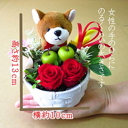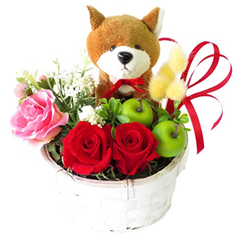 誕生日プレゼント 女性 花 プレゼント プリザーブドフラワーのバラと柴犬のフラワーアレンジメント 犬 アレンジメント