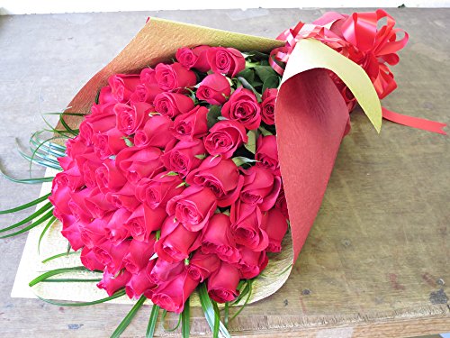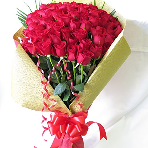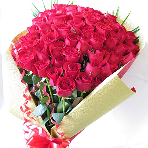 - ◎メッセージカード付けられます。商品をカートに入れた後商品の下の「ギフト設定」にチェックを入れて下さい。「レジに進む」→「お届け先住所の選択」→ギフトの設定をして下さいのページで「ギフトメッセージを入れる」にチェックを入れてご記入して下さい。◎宅配便には箱のサイズ制限があります。可能な最大の箱でお届けしますが、長さが同じ大輪のバラで60本花束は作れない為段差をつけて花束に仕上げます。