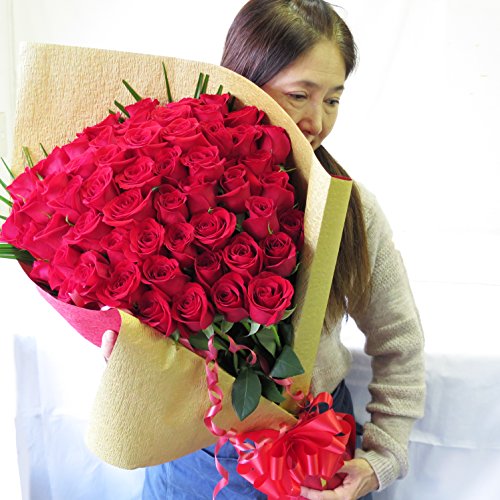 - ◎本州は送料無料。豪華!還暦祝いプレゼント。赤とゴールドのラッピング 【サイズ】長さ約65cm。 【 サンモクスイ 】 で検索頂くと、ご希望の本数のバラの花束がご覧頂けます。