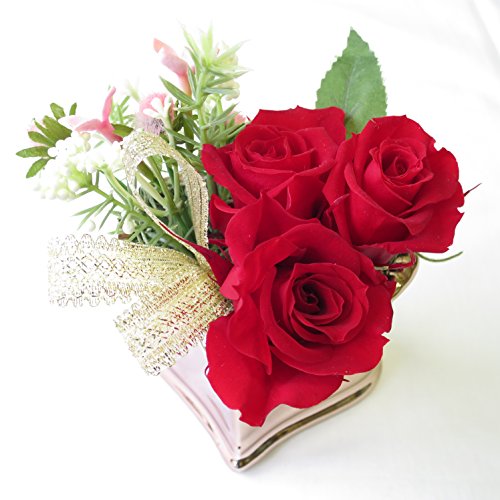 - ※ホコリも安心のクリアケース入り。もちろん取り出して飾ることもできます。花・プリザーブドフラワーの真紅のバラをエレガントなハートの器にアレンジしました。プレゼントや女性の誕生日プレゼントにぴったりです。写真はイメージです。手作りの為、バラの色その他の花材・器は一部変更される場合があります。水やり不要。お届け先にうれしい、管理に手間いらず。美しさを保つ、長期間保存できます。