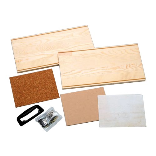 - セット内容:縦・横板(ミゾ付)2枚、側板(コルクべニア・アクリル板・MDF)各1枚、組立用金物一式