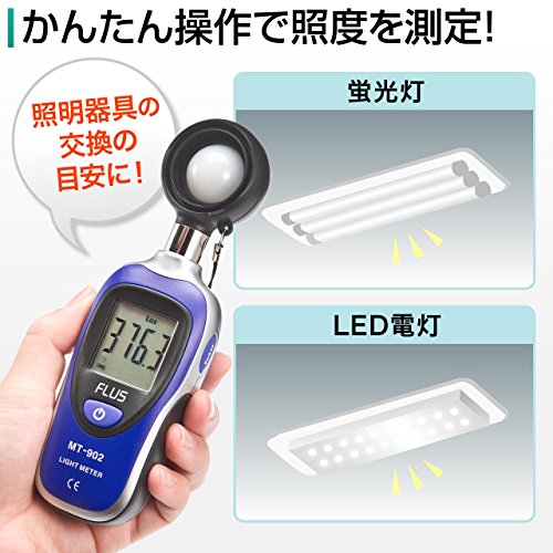 - 簡単に操作できるデジタル表示の照度測定器です。(※測定値は目安の数値となり、実際の数値と多少前後する可能性があります)