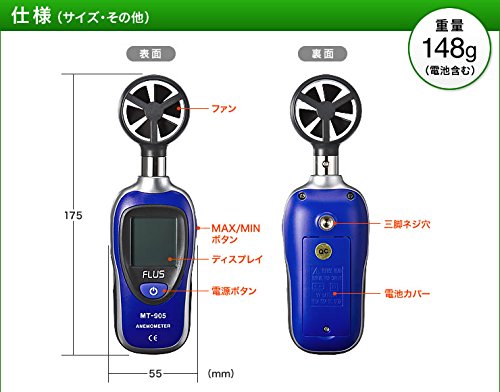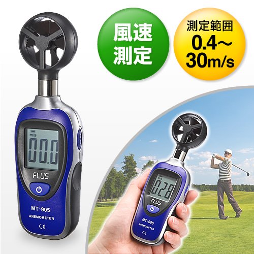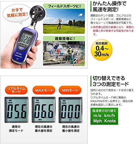 - 簡単に操作できるデジタル表示の風力測定器です。(※測定値は目安の数値となり、実際の数値と多少前後する可能性があります)
