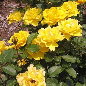 このバラは、褐色が非常に少なく、見事な純黄色の色彩の強健種です。黄色のバラ愛培した米国の名優ヘンリーフォンダに捧げられたバラです。庭植えに適しているバラです。