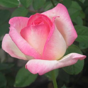 - 作出年:1981年。作出国:フランス。花弁色:白にふちがピンク。咲き方:四季咲き。芳香の強さ:中香。花形:半剣弁高芯咲き。花弁数:35~40枚。花径:12~15cm。樹高:1.2m 。樹形:半横張り性。